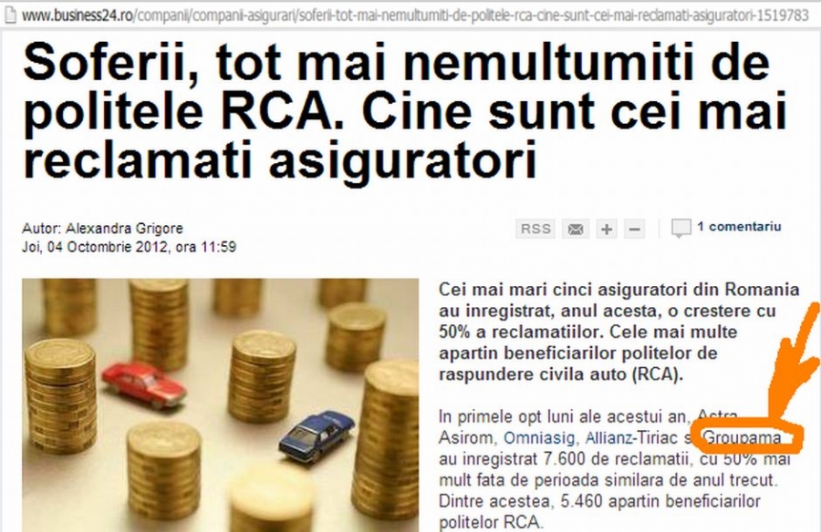 Cei mai mari cinci asiguratori din Romania au inregistrat, anul acesta, o crestere cu 50% a reclamatiilor. Cele mai multe apartin beneficiarilor politelor de raspundere civila auto (RCA). In primele opt luni ale acestui an, Astra, Asirom, Omniasig, Allianz-Tiriac si Groupama au inregistrat 7.600 de reclamatii, cu 50% mai mult fata de perioada similara de anul trecut. Dintre acestea, 5.460 apartin beneficiarilor politelor RCA.