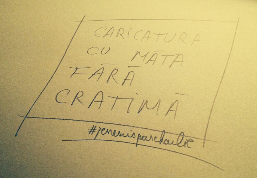 Caricatura nr. 3: Nadia Comaneci stranguland-o pe Simona Halep cu ciorapii lui Adrian Iovan, care rade fericit pe un avion plin cu schelete de tigani care fac sex.