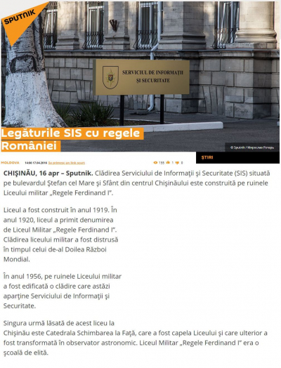 Știrea se încheie abrupt. Voi înțelegeți care e faimoasa "legătură" dintre Serviciul de Informații al Republicii Moldova și un rege al României? Nici eu. Dar uite cum s-a plantat, de trei ori, informatia că există o legatură intre serviciul secret moldovenesc si un rege al Romaniei. Si, de parca nu era de ajuns, în 2018 cei de la Sputnik au mai publicat o știre cu titlul "Incredibil: ce legături a avut SIS-ul de la Chișinău cu regele României". În realitate, e aceeași tâmpenie de știre din 2016, cuvant cu cuvant, dar cu altă poză.