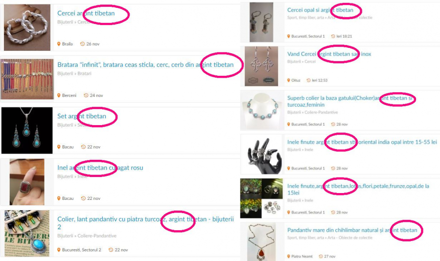 "Argintul tibetan ar trebui sa defineasca bijuterii facute in Tibet si pe care le poti recunoaste, chiar daca nu te pricepi la simboluri, dupa finisajele brutale si dupa acea nuanta intunecata a argintului. In realitate, bijuteriile din argint tibetan sunt foarte putine, pentru ca manufacturierii lor sunt putini. Tibetul e o tara mica, slab populata, care aloca 99% din resurse gasirii hranei si indatoririlor religioase. Tibetanii nu se dau in vant dupa bijuterii: nici nu le poarta, nici nu le fac pentru export. Piata romaneasca este plina de falsul argint tibetan, cel care e un adevarat pericol. Bijuteriile vandute ca argint tibetan contin 2-6% argint, dar si zinc, cositor, crom, aluminiu, nichel, plumb, adica aliaje si metale grele toxice pentru organismul uman, fapt ce atrage după sine recomandarea că femeile însărcinate şi copiii până la 6 ani să evite total purtarea "argintului tibetan". Plumbul afectează la adulţi tensiunea arterială, fertilitatea, sistemul nervos, produce dureri musculare şi articulare, iritabilitate şi pierderi de memorie, iar copiii sunt şi mai expuşi: chiar şi o cantitate mică poate afecta capacitatea de învăţare, rinichii şi auzul, poate cauza deficit de atenţie, probleme de comportament. Exista o afecţiune care poate fi provocată chiar de aceste bijuterii: dermatita alergică de contact. Nichelul, zincul si plumbul sunt cele mai iritante metale si exact astea se gasesc in argintul tibetan. In cazurile grave, aceste metale declanseaza dermatita alergică de contact cu erupţie la distanţă, adica te umpli de eczeme pe tot corpul, care se vindeca in trei luni".